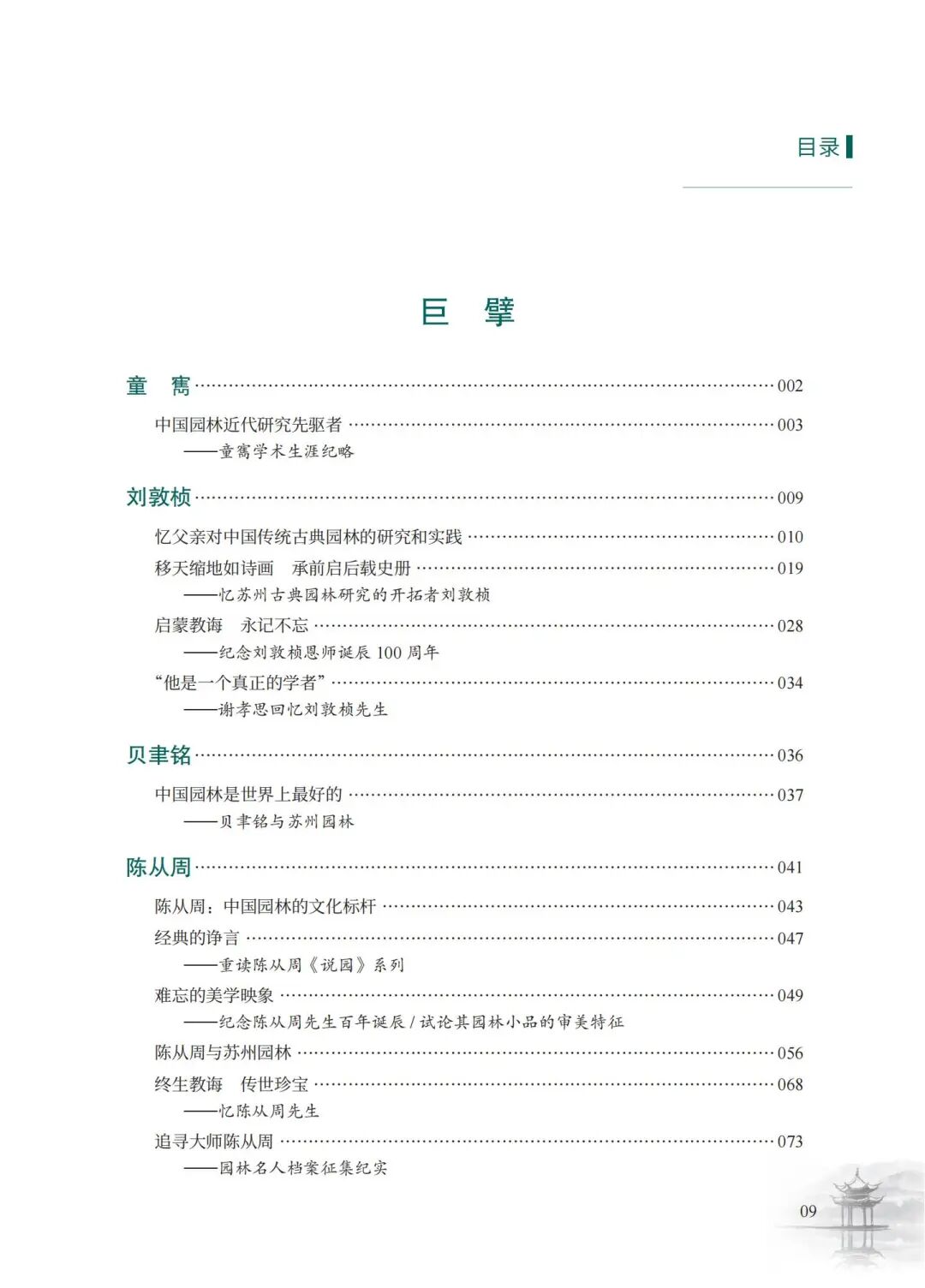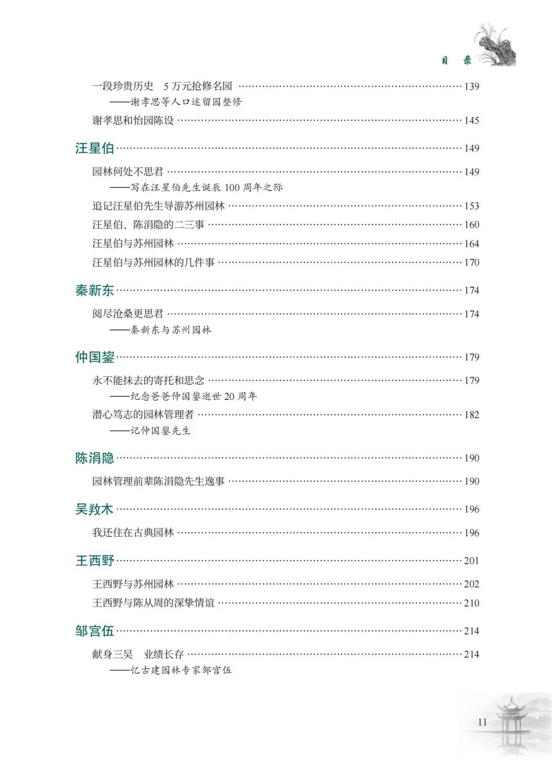 編輯這本選集,緣自《蘇州園林》雜志從20世紀90年代初創至今,歷年刊發的人物回憶錄、傳記、軼事、評論等文章,已有60余篇40余萬字,這些人物都是自中華人民共和國成立以來的社會名師大匠,他們為蘇州園林貢獻過自己的力量。“園林何處無君影”,他們不僅留下了令人難以忘懷的聲聲影影,更留下了珍貴的作品和印記,是蘇州園林傳承與發展中的寶貴財富。